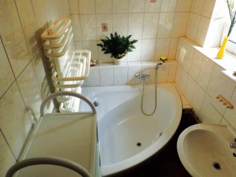 Küche, sowie über ein komfortables Bad mit Eckbadewanne.